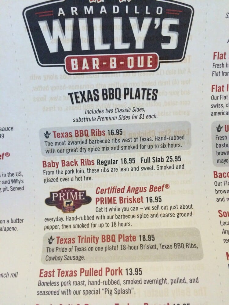 Armadillo Willy’s BBQ Menu (Update 2025)